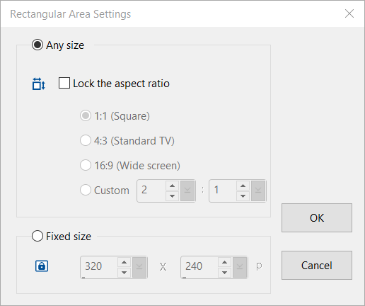 Custom - Record an area with your aspect ratio (1-50).