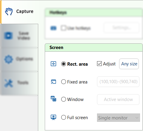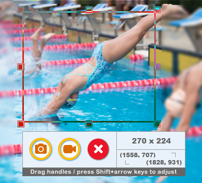Adjust - Use the mouse and keyboard to adjust the area before recording.