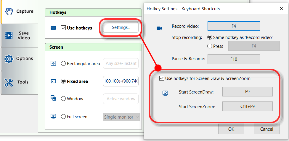 Click on the Hotkey button on the right to show the ScreenDraw Settings dialog.