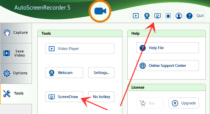 Change pen width: - Press the arrow keys on your keyboard to change the pen width when it's in ScreenDraw mode. The width can be between 2 to 14 pixels.