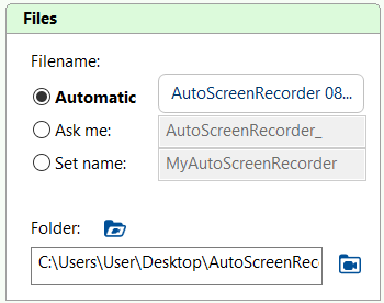 When AutoScreenRecorder 5 was first run on a PC, it will create a folder called AutoScreenRecorder on your desktop as the default folder. You can change it anywhere of your choice.