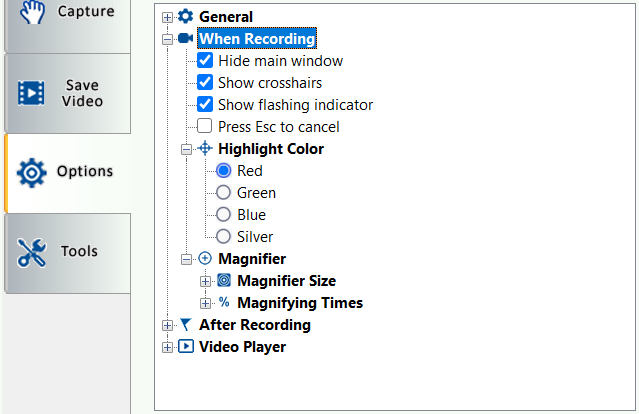 Show flashing indicator - Check to show the flashing indicator when recording, except the full-screen recording.