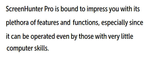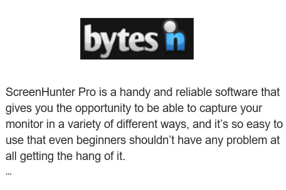 Congratulations on the software, I've been a happy ScreenHunter user for many years. Last year I formatted my work computer and took the opportunity to test alternatives. I tried 5 or 6 alternatives, just to confirm ScreenHunter is still the best... (Apr. 23, 2019)