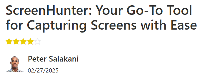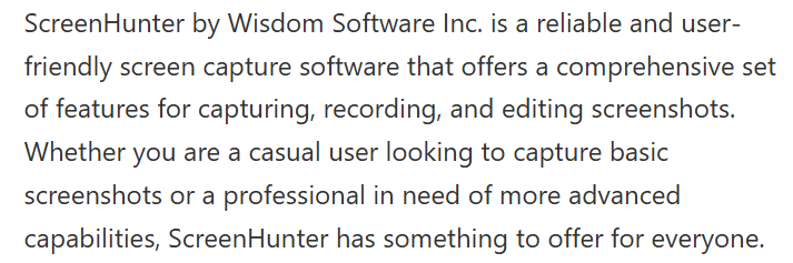 ScreenHunter is by far the best and easiest screen and video-capturing system; I like it very much. (Apr. 5, 2024)
